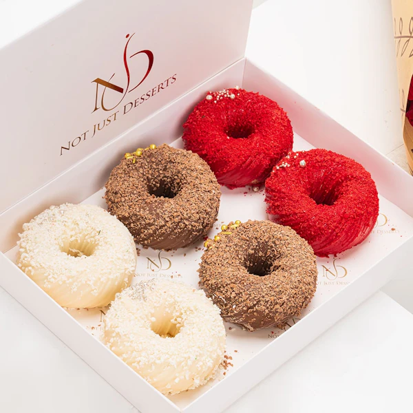 AED255افتح صندوقًا صغيرًا مليئًا بالاحتفالات مع صندوق الميني كيك من نوت جست ديزرت! ستة ميني كيك على شكل دونات، كل منها مليئة بنكهة مختلفة - شوكولاتة غنية، وفانيليا كلاسيكية، وريد فيلفيت لذيذة - توفر رحلة مذاق مرحة ولذيذة.