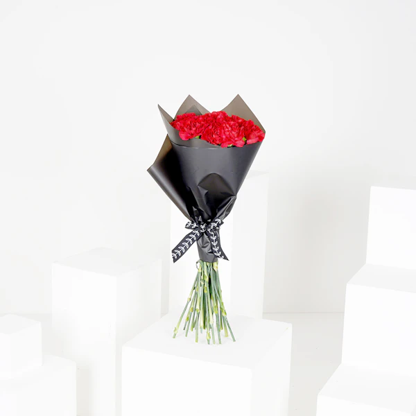 باقة الكرنيشن الاحمرالكلاسيكي هو الطريقة المثلى للتعبيرعن حبك. يرمز اللون الأحمر العميق للكرنيشن إلى الحب والإعجاب والعاطفة، مما يجعله الطريقة المثالية لإظهار مدى أهمية الآخر بالنسبة لك. حجم الباقة وترتيبها المدروس يجعلها الهدية المثالية لمفاجأة من تحب، وستشعر بالخصوصية والحب.