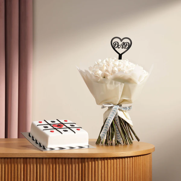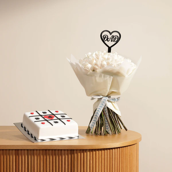 احتفل بالأب بطريقة مميزة مع هدية كيك الشوكولاتة الفاخرة. هذه الكيك الغنية بالشوكولاتة الداكنة مصممة خصيصًا لتقديم تجربة لذيذة لا تُنسى. تأتي هذه الهدية مع باقة زهور رائعة تجمع بين زهور الجوري الأبيض النقية، مرفقة بعود تزيين يحمل كلمة "أبي" بأسلوب أنيق. تعبر هذه الهدية عن الامتنان والحب للأب في يومه الخاص، مما يجعلها الخيار المثالي لتقدير جهوده وإدخال السعادة إلى قلبه. امنح والدك لحظات لا تُنسى مع هذا المزج البديع بين الطعم الشهي والجمال الطبيعي.