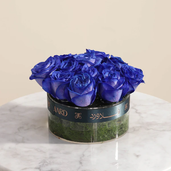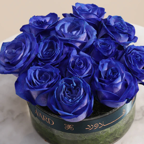 أضف لمسة من الأناقة والتميز إلى أي مكان مع ورود الجوري الزرقاء المنسقة بعناية في فازة أكريليك أسطوانية. هذا التنسيق الفاخر يجمع بين جمال الورود الزرقاء الفريدة والفازة الأنيقة، مما يجعله الخيار المثالي لإهداء من تحب أو لتزيين اي مناسبة بمظهر راقٍ. سواء كانت لديك مناسبة خاصة أو ترغب فقط في إضافة لمسة من الجمال إلى يوم من تحب، فإن هذا التنسيق سيضفي جوًا من الهدوء والسحر على أي مساحة. اختر فازة الجوري الأزرق لتعبير أنيق ومميز عن مشاعرك.