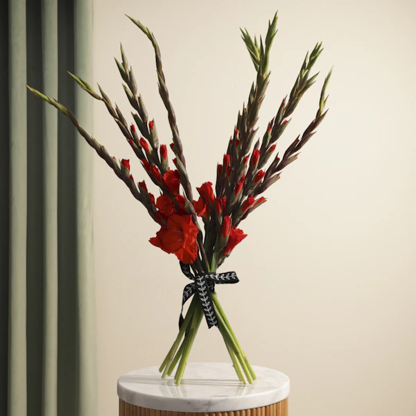 أرسل أرقى زهور لأحبائك مع هذه الباقة المذهلة المكونة من 10 زهور غلاديلاس حمراء. هذه الزهور الرائعة تجلب لمسة من الفخامة والجمال إلى أي مناسبة. بفضل لونها الأحمر الجذاب وتنسيقها الأنيق، تُعد هذه الباقة الخيار المثالي للتعبير عن مشاعرك وإظهار مدى اهتمامك. أرسل أفخم زهور لتضفي جوًا من الرقي والجمال في أي مكان. لا تتردد، اطلب الآن هذه الباقة الفاخرة واستمتع بتقديم هدية تترك انطباعًا لا يُنسى. هذه الزهور مثالية للمناسبات الخاصة ولإضفاء لمسة من التألق على يوم من تحب.