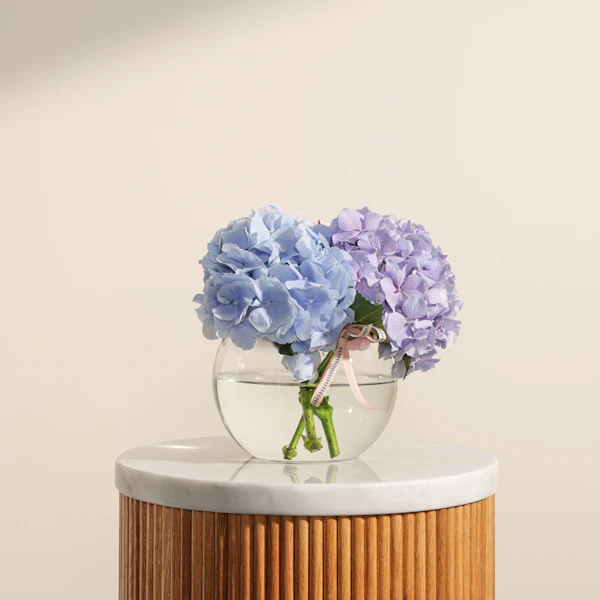احتفل بالأناقة والجمال مع ترتيب الزهور المميز هذا. تجمع باقة الهيدرانجيا بين الألوان الرائعة: الوردي، الأزرق، والبنفسجي، لتخلق تنسيقًا فنيًا يلفت الأنظار. تقدم هذه الأزهار في مزهرية زجاجية دائرية أنيقة، مما يعزز من جمالها ويضفي لمسة عصرية على أي ديكور. مثالية كهدية في المناسبات الخاصة أو كلمسة جمالية لمنزلك، هذه الباقة تضمن إدخال البهجة والسرور إلى أي مكان. اختر هذا الترتيب المذهل ليكون رمزًا للتفرد والجمال في كل مناسبة.