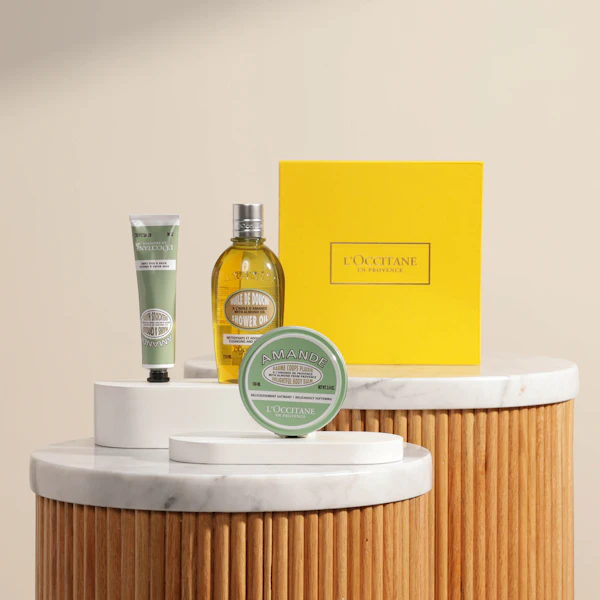 دلّلي نفسك مع مجموعة تقشير اللوز من لوكسيتان التي تقدم لك تجربة فريدة من نوعها للعناية بالجسم. تحتوي المجموعة على بلسم الجسم المبهج باللوز 100 مل الذي يمنح بشرتك نعومة وترطيباً لا مثيل له، وزيت الاستحمام باللوز 250 مل الذي ينظف البشرة بلطف ويتركها منتعشة. كما تشمل المجموعة كريم اللوز اللذيذ لليدين والأظافر 75 مل، الذي يعزز نعومة يديك ويقوي أظافرك. كل منتج في هذه المجموعة يحتوي على فوائد اللوز الغني، ليمنحك إحساساً بالراحة والجمال. لا تفوتي الفرصة لتحصلي على هذه التجربة الفاخرة واطلبي الآن لتنعمي بجمال يليق بك.