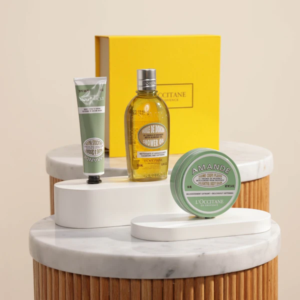 • بلسم الجسم المبهج باللوز 100 مل: بلسم الجسم اللذيذ هذا سوف يدللك ببهجة خالصة. لفي بشرتك بحجاب مغذي مع تركيبة التدليك اللذيذة هذه. يذوب بشكل لذيذ على بشرتك للحصول على لمسة نهائية فائقة النعومة ونضرة.