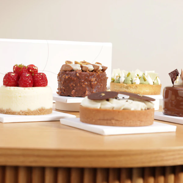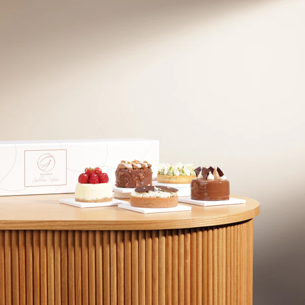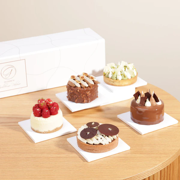 استمتع بتشكيلة من الكيك اللذيذة من باتيسري باي جيليرمو بالومو، حيث تأتي بخمس قطع مميزة بنكهات متنوعة لتناسب جميع الأذواق. تذوق تشيز كيك التوت المخبوز بدقة، وبراوني برالون البندق اللذيذ، وكيك الشوكولاتة الرائع، وتورتة الفستق الشهية، وتورتة القهوة الرائعة.كل قطعة تمثل توليفة فريدة من النكهات الغنية والطازجة، مما يجعلها الخيار المثالي للمناسبات الخاصة أو كهدية لأحبائك. اجعل كل لحظة تحتفل بها لا تُنسى مع تشكيلة الكيك الرائعة من باتيسري باي جيليرمو بالومو.