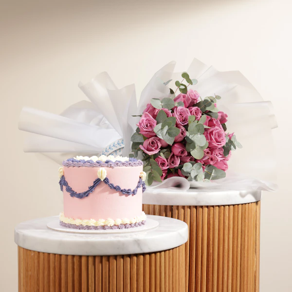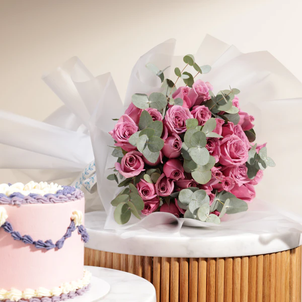 استمتع بتجربة لذيذة ومميزة مع كيك كرامبلز الكرسبي بنكهة الفانيليا باللون البنفسجي، مصممة لإضافة لمسة من الأناقة إلى أي مناسبة. ولتكملة هذه التجربة الفريدة، تقدم مجموعة من ورود الجوري البنفسجي. هذه الورود تعبر عن الفخامة والجمال، وتضفي لمسة من الرومانسية والسحر إلى الهدية. بفضل توازنها المثالي بين النكهات اللذيذة والجمال الطبيعي للزهور، تجعل هذه الهدية لحظة الاحتفال أكثر إشراقًا وسحرًا، مما يجعلها خيارًا مثاليًا للمناسبات الخاصة والاحتفالات المهمة.