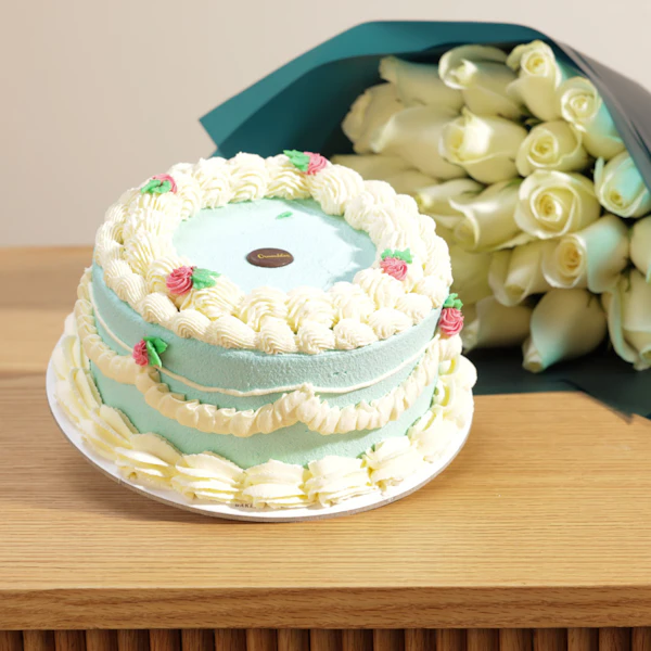 SKU FC52817استمتع بلحظات من السعادة والطعم الرائع مع كيك زرقاء بالفانيليا المقرمشة من كرمبلز. يكفي الكيك 2 إلى 4 أشخاص ويتميز بطعمه الرائع والمنعش، مما يجعله اختيارًا مثاليًا لمشاركته مع أحبائك في أي مناسبة خاصة. ولإضافة لمسة من الجمال، تأتي الهدية مع باقة جوري أبيض رائعة في غلاف أخضر داكن، تعكس الأناقة والرقي. هدية لا تُقاوم تجمع بين الطعم الرائع والجمال الطبيعي، لإدخال البهجة والسعادة إلى كل مناسبة.