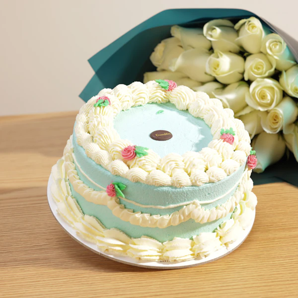 BHD38استمتع بلحظات من السعادة والطعم الرائع مع كيك زرقاء بالفانيليا المقرمشة من كرمبلز. يكفي الكيك 2 إلى 4 أشخاص ويتميز بطعمه الرائع والمنعش، مما يجعله اختيارًا مثاليًا لمشاركته مع أحبائك في أي مناسبة خاصة. ولإضافة لمسة من الجمال، تأتي الهدية مع باقة جوري أبيض رائعة في غلاف أخضر داكن، تعكس الأناقة والرقي. هدية لا تُقاوم تجمع بين الطعم الرائع والجمال الطبيعي، لإدخال البهجة والسعادة إلى كل مناسبة.