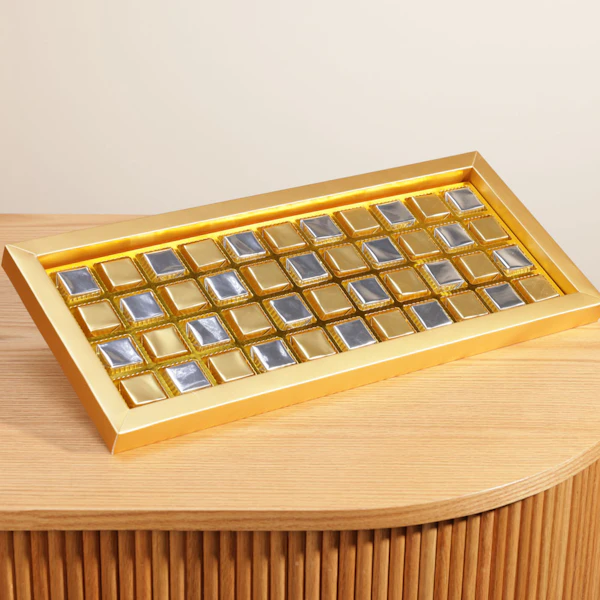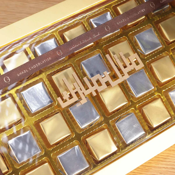- علبة شوكولاتة منزل مبارك من غزل 44 قطعه