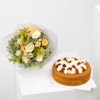 SKU FC77781اجعل من أوقات الاحتفال أكثر حلاوة مع هذه الهدية الرائعة التي تتضمن كيك العسل بواسطة غييرمو مع نكهات فانيليا شانتيلي، وكريم الكراميل وتزيين من البقان. يزن الكيك 2 كيلوجرام وتكفي ل 8 إلى 10 أشخاص. تتضمن الهدية أيضًا ورود جوري بيضاء، وليبيديوم أبيض، عصا ذهب أصفر، و ورود بيبي جوري برتقالي فاتح. تجمع هذه الهدية بين لذة الحلوى اللذيذة وجمال الورود الطبيعية، مما يجعلها خيارًا مثاليًا للإهداء في مناسبات مختلفة.