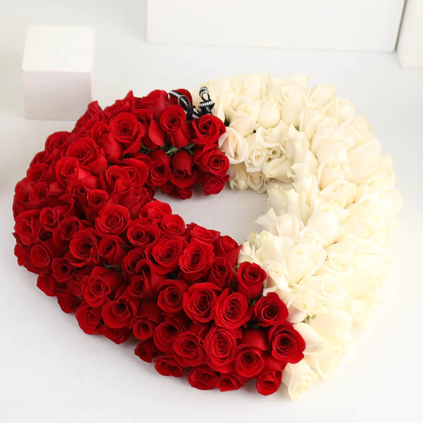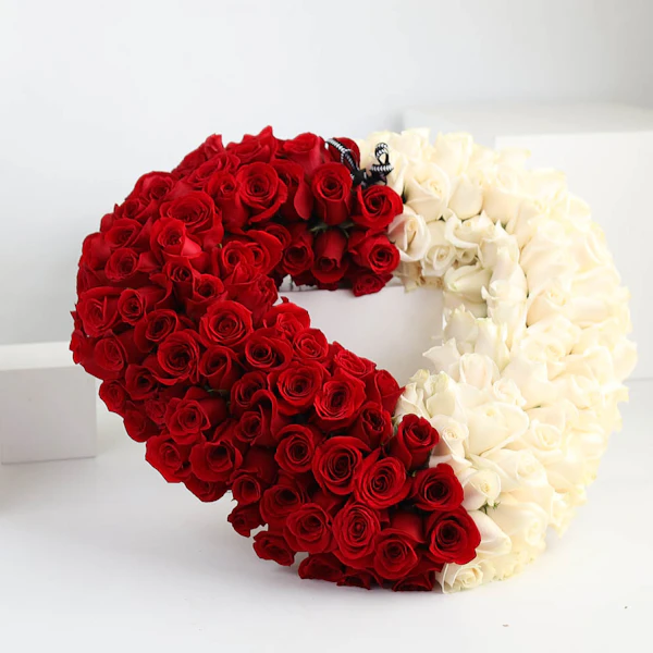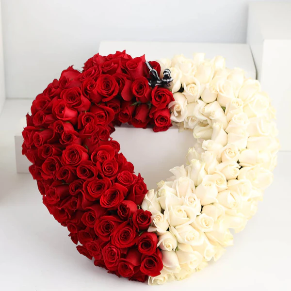 شارك مشاعرك عن طريق إرسال هذا الترتيب الخاص الذي يحتوي على الزهور البيضاء والحمراء