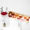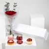 امتع من تحب بألذ الحلويات في عيد الحب مع صندوق باتيسيري باي جيليرمو بالومو الذي يحتوي على 5 قطع لذيذة. من كيك الشوكولاتة الغنية إلى تارت التوت والفانيليا اللذيذ، هذه التشكيلة تعد بلذة المذاق وسعادة القلب. يأتي صندوق الحلوى مع باقة من 12 وردة جوري حمراء مشرقة مزينة بأوراق الأوكالبتوس الخضراء المنعشة في تغليف أبيض أنيق، هذه الهدية بالتأكيد ستبعث الدفء والسعادة في قلب من تحب وتجعل احتفالكما معًا بعيد الحب هذا العام مميز ومبهج. امنح من تحب يومًا مليئًا بالحب والحلاوة واللحظات الثمينة معًا.