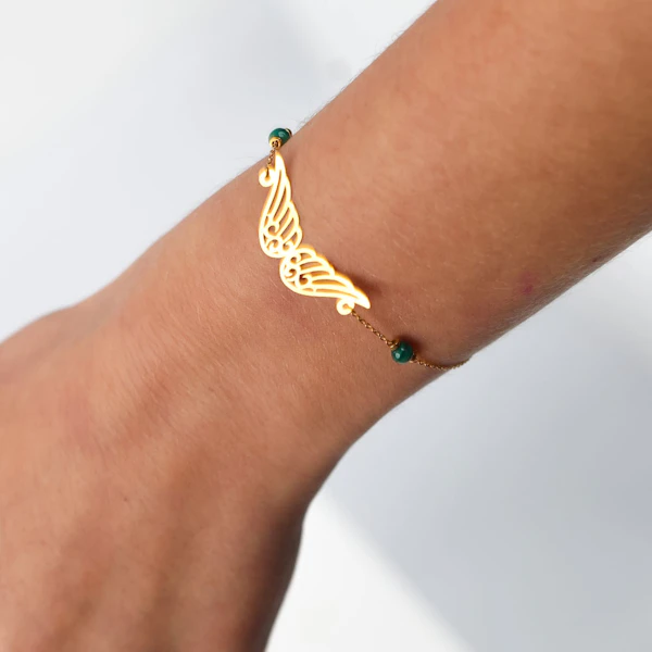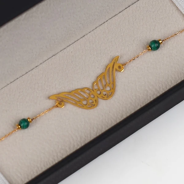 - سوار شكل جناحين من العلوي مرصع بأحجار الملكيت الأخضر عيار 21 قيراط