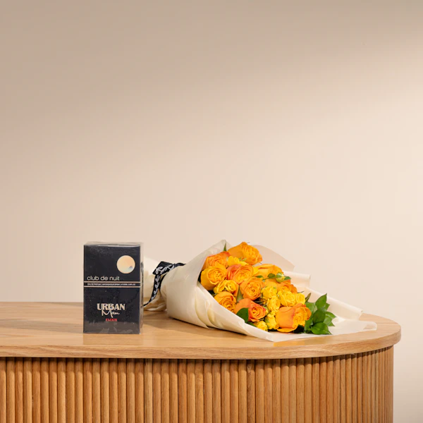 ارفع مستوى حواسه مع عطر انتنس مين نايت كلوب من ارماف للرجال، عطرًا جذابًا يتناغم مع الثقة والأناقة. مزيجه المنعش من الحمضيات والتوابل والروائح الخشبية يخلق أجواءً لا تقاوم. ومع هذا العطر المثير، تأتي باقة زاهية تضم جوري برتقالية وبيبي جوري صفراء، رمزًا للحيوية والفرح. معًا، يُشكّلون هدية متناغمة تحتفي بفرادته وأناقته. سواء كانت لمناسبة خاصة أو للاستخدام اليومي، فإن هذا التوافق مؤكد أنه سيترك انطباعًا دائمًا وسيجعله يشعر بالتقدير الحقيقي.