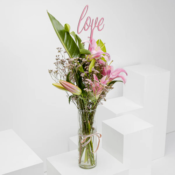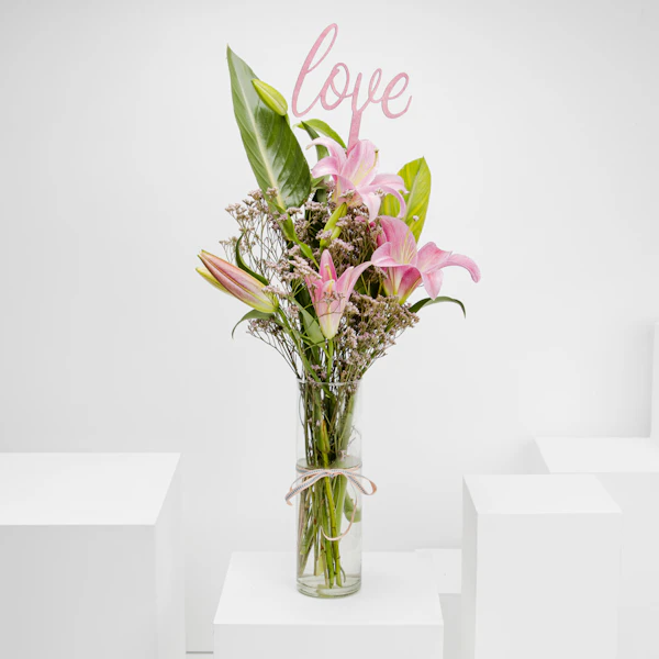 هذا المزيج المبهر من الليليوم الوردية، واللافندر البنفسجي، مع أوراق الأستريليتزيا الخضراء هو الهدية المثالية. تم تنسيق الزهور داخل مزهرية أسطوانية أنيقة ليصنعا معًا لوحة فنية مبهجة وجميلة. تشتهر هذه الزهور بألوانها الزاهية، وشكلها الفريد، ومظهرها الرقيق. تباين الألوان يعطي أحساس بالدافئ ويجعلها هدية مميزة تصلح للعديد من المناسبات السعيدة. كما أن المزهرية الأسطوانية تساعد على إبراز الأزهار وتوفر مظهرًا عصريًا وأنيقًا. هذه المجموعة مثالية للتعبير عن حبك وتقديرك لأحبائك.