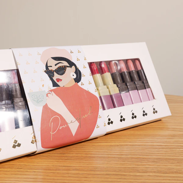 11 قطعة من أحمر الشفاه بالشوكولاتة بطعم رائع محشوة بحشوات كريمية.