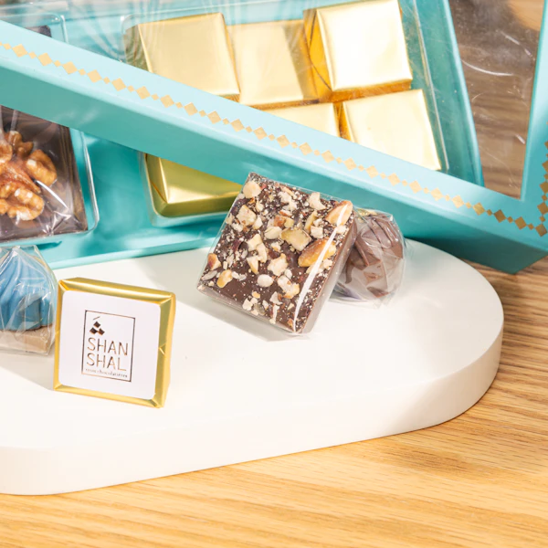تفاصيل علبة شوكولاتة  فيروزي من شان شال: