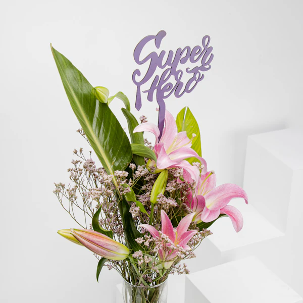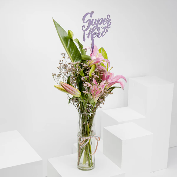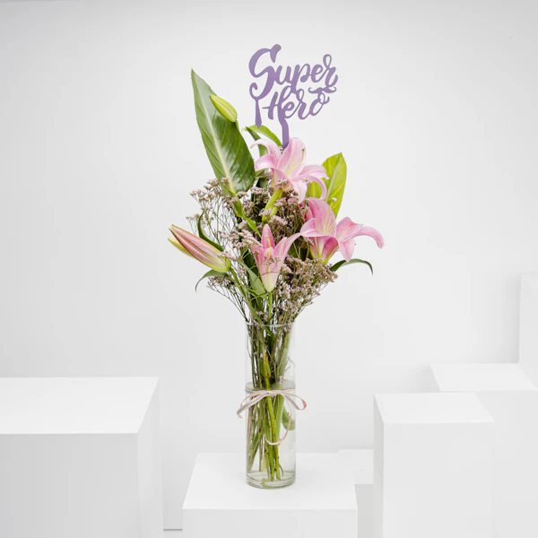 سوبر هيرو | الليليوم الوردي | مزهرية  زجاج