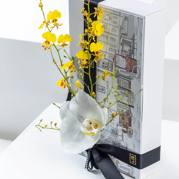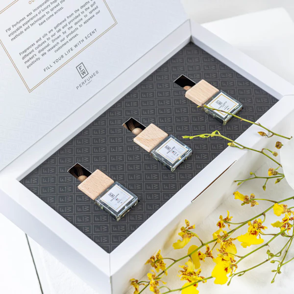 ترتيب فريد يضم أوركيد بيضاء وأونسيدوم أصفر، مع مجموعة من ثلاثة عطور للسيارة من عطور ف.و بحجم 8 مل: الكويت، العنبر، ودبي. هدية لا تخطئ أبدًا. ارفع أجواء سيارتك مع موزع روائح السيارة من عطور ف و، الذي يتميز برائحة الأوركيد البيضاء الرقيقة والسحر النابض بالحياة للأونسيديوم الأصفر، الممزوجين بشكل جميل في ثلاثية من ثلاث زهور رائعة. يوفر موزع روائح السيارة هذا لمسة من الأناقة والفخامة لرحلاتك، مما يخلق جوًا هادئًا ومبهجًا أثناء القيادة. رائحة الزهور والتصميم الأنيق يجعلان منه إكسسوارًا مثاليًا لسيارتك وحواسك، مما يسمح لك بالاستمتاع بجمال روائح الطبيعة أينما ذهبت.