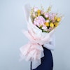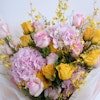 يتضمن هذه البوكه اليد فاخره علي الهايدرنجا الوردي, الجوري الالوردي و الجوري الاصفر.