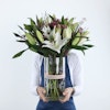 اطلقوا سراح جمال الطبيعة مع هديتنا الرائعة التي تتضمن زهور الليليوم الأبيض وزهور الشمع البنفسجية في إناء زجاجي أنيق بشكل أسطواني. هذه التحفة الزهرية هي سيمفونية من النعمة والجاذبية، مثالية للتعبير عن مشاعرك في أي مناسبة. نقاء زهور الليليوم الأبيض يتناغم مع درجات اللون العميقة لزهور الشمع البنفسجية، مما يخلق تناقضًا مذهلاً سيلفت الأنظار. سواء كنت تحتفل بالحب، أو تقدم تعازيك، أو تجعل يوم شخص ما أكثر إشراقًا، هذا الرسم هو اختيار غير متزايد على الزمن. اعتنقوا فن الطبيعة ودعوا هدية الزنبق الأبيض وزهور الشمع البنفسجية تحكي قصتكم. شاركوا المشاعر مع الزهور التي تتجاوز الكلمات.