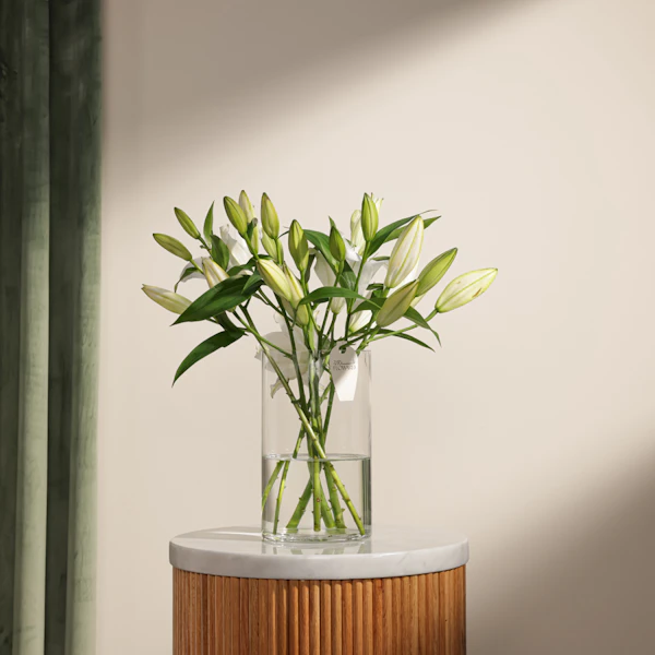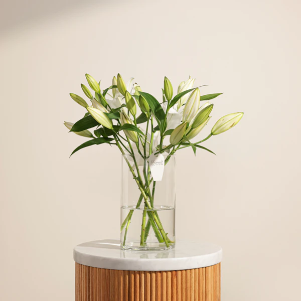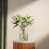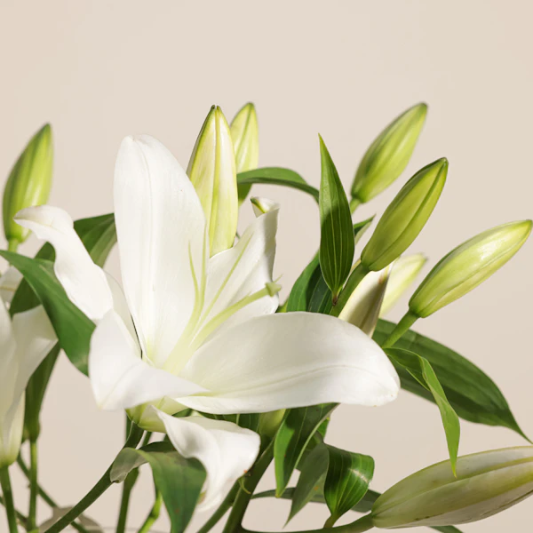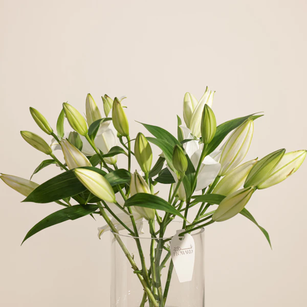 احتفل بالجمال البسيط مع مجموعة زهور ليليوم أبيض النقية في مزهرية زجاجية راقية. تتألق زهور الليليوم بأبيضها النقي وتألق أخاذ، تعكس النقاء والسحر في كل زهرة. تمتزج تلك الأزهار بأوراقها الخضراء اللامعة في مزيج ينبض بالحياة والأناقة. اختر هذه الهدية لتعبر عن مشاعرك بشكل لا يُنسى، سواء كانت لمناسبة خاصة أو لبساطة الاحتفال بالحياة.