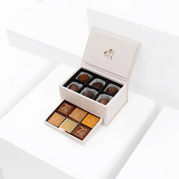 استمتع بتجربة مثالية مع صندوق شوكولاتة جوديفا  ميني الملكي ، وهو كنز صغير من الشوكولاتة الفاخرة التي تعدك بإسعاد حواسك. تكتمل هذه الهدية الرائعة بباقة صغيرة ساحرة تتميز بالجمال النابض بالحياة للجوري الفوشيه والجاذبية الرقيقة لزهرة الستريميريا الوردية. هذا المزيج المتناغم من الشوكولاتة اللذيذة والزهور الطازجة هو الطريقة المثالية لإضفاء مزيد من الخصوصية على أي مناسبة. سواء كنت تحتفل بلحظة خاصة أو تعبر عن عاطفتك، فمن المؤكد أن هذه الهدية ستخلق ذكريات دائمة، وهو عبارة عن لفتة مدروسة وأنيقة تجسد جوهر الحلاوة والجمال، مما يجعلها هدية مثالية لأحبائك.