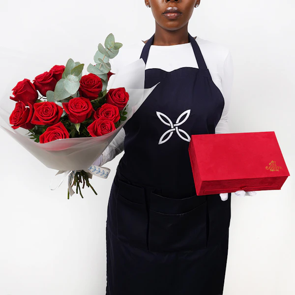 QAR795هدية يوم الحب هي تجربة فاخرة تتضمن صندوق شيكولاته رويال صغير من جوديفا، والتي تحتوي على 15 قطعة من حلوى برالين و ترافل الرائعة، بالإضافة إلى 30 قطعة كاريه. هذه المجموعة من الشوكولاتة اللذيذه مناسبة للملوك، وتعدك بالمتعة والبهجة. وتكتمل الشوكولاتة الفاخرة بباقة يد، وسيمفونية رومانسية مزينة بالجوري الحمراء العاطفية، ورائحة الأوكالبتوس المنعشة، وغلاف أبيض أنيق. يخلق هذا المزيج الحصري رحلة حسية من الذوق والأناقة، مما يجعله هدية مثالية يوم الحب. ارفع مستوى تجربة إهدائك من خلال مشاركة ثراء شوكولاتة جوديفا وجمال الزهور الفريش مع أحبائك.