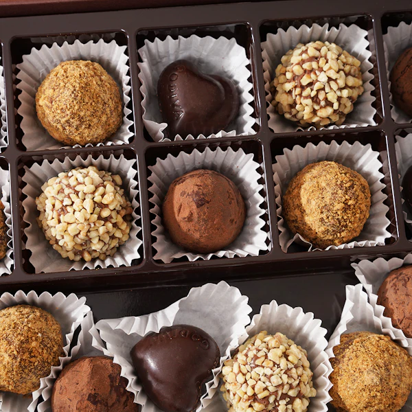 شوكولاتة الحليب الكريمية، الشوكولاتة الداكنة اللذيذة، الشوكولاتة البيضاء الرائعة مع الحشوات الكلاسيكية مثل الجناش الناعم، حلوى البرالين اللذيذة، الترافل، والبسكويت. - 12 : جوري احمر