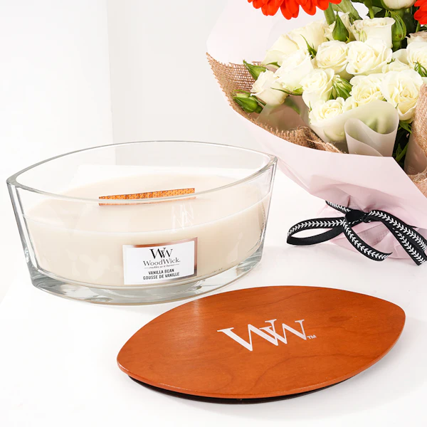 شمعة الفانيليا بشكل ايليبس من وود ويك | زهور مشرقة