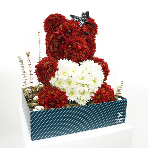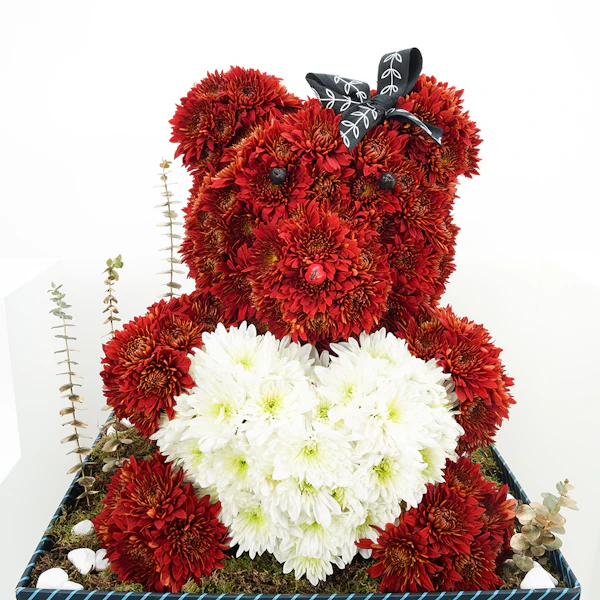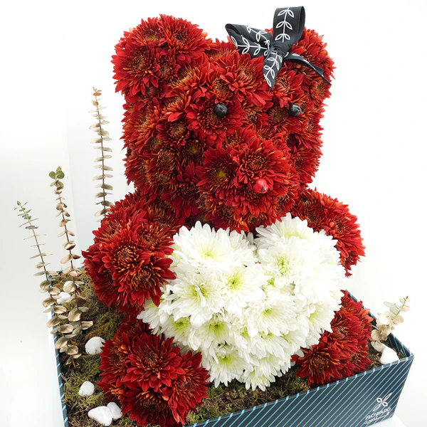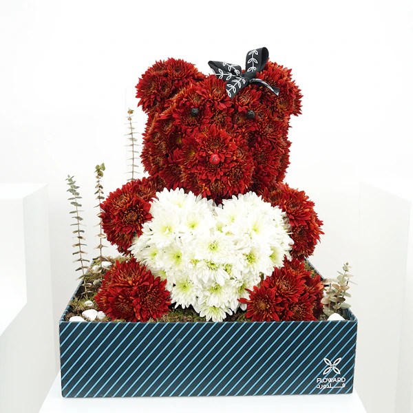 اكشف عن مثال المودة مع هدية الدميه الدب الأحمر تم تشكيل هذا الترتيب الساحر بمهارة على شكل دمية دب رائعة، مزينة بأقحوان أحمر نابض بالحياة يطوي قلبًا بدقة، يرمز إلى الحب والدفء. تضيف الأناقة الخالصة للأقحوان الأبيض لمسة من الصفاء إلى هذا الإبداع الفريد. مثالية للتعبير عن الحب والاحتفال باللحظات الخاصة، هذه الهدية المدروسة هي تمثيل ساحر للمشاعر. اجعل يوم شخصا استثنائيًا مع تنسيق الأزهار المعبّر، الذي يلتقط بشكل جميل جوهر الروابط القلبية. استمتع بمتعة العطاء مع الدميه الدب الأحمر الهدية التي تتحدث كثيرًا دون أن تنطق بكلمة واحدة.