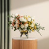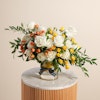 QAR290أضف البهجة إلى أي مناسبة مع مزهرية الأناقة المضيئة. تتميز هذه المزهرية الرائعة باللون الأبيض النقي للجوري والبرتقالي والأصفرللبيبي جوري النابض بالحياة البهيج والتي تتكامل بشكل مثالي مع أوراق البيتوسبوروم والروسكوس الإيطالي. تُعرض هذه الباقة في مزهرية زجاجية اسطوانية أنيقة، وتشع بمزيج متناغم من الألوان والأنسجة. مثالية لإضفاء البهجة على اللحظات الخاصة أو ببساطة نشر الفرح، تضفي باقة الأناقة المضيئة لمسة من الرقي والدفء على أي مكان. احتفل بنفحة من أشعة الشمس والنعمة واختر هذه المزهرية الرائعة لترك انطباع دائم.