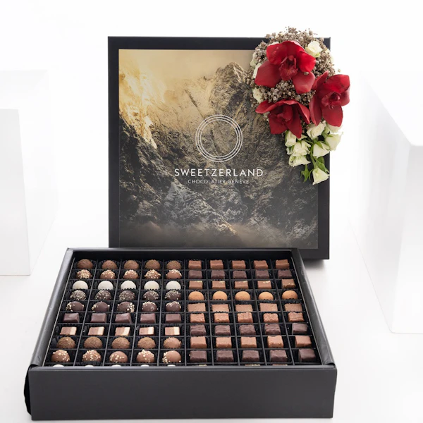 صندوق كبير سويتزرلاند ترافل والبرالين 200 قطعةسيمبيديوم الأرجواني: 3الغيبسوفيليا: 2بيبي جوري البيضاء: 2