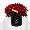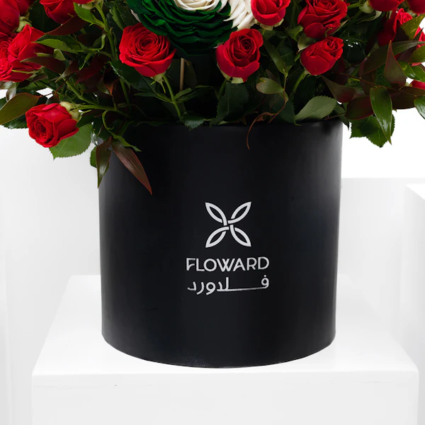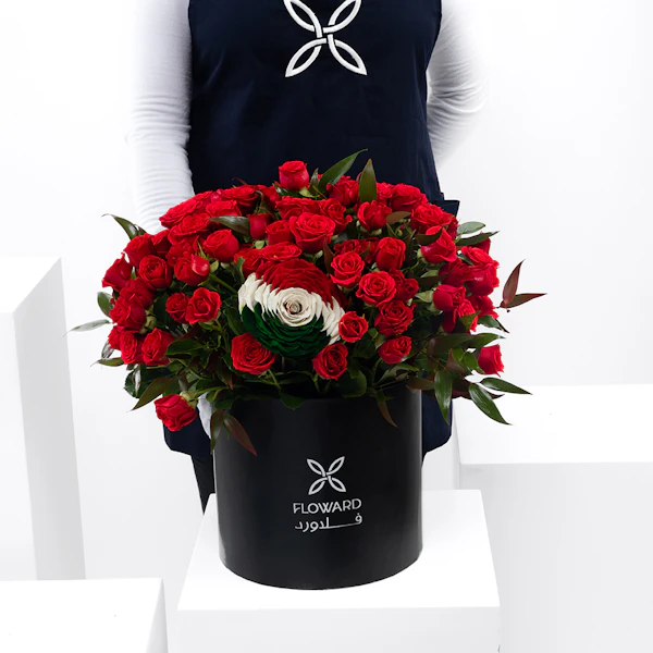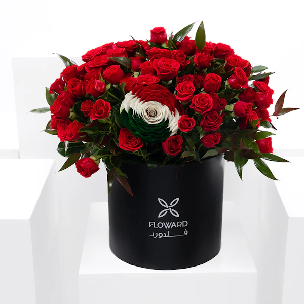 QAR430يحتوي هذا الترتيب على 20 بيبي حمراء ،جوري دائمة بألوان علم المكسيك و روسكوس ايطالي ، وصندوق أسود مستدير.