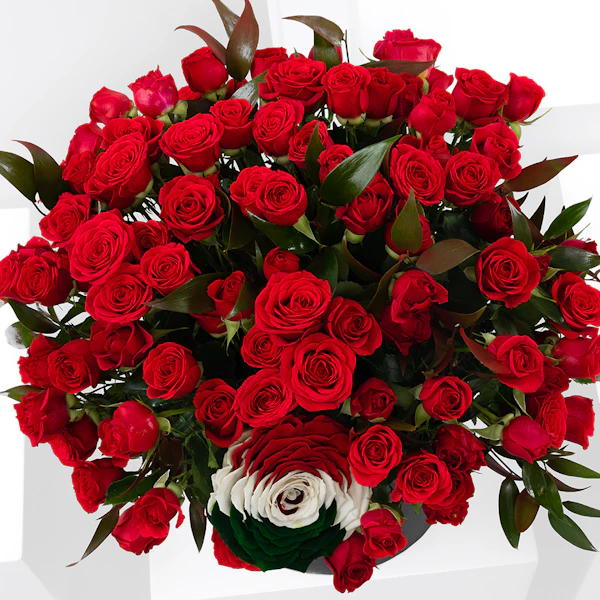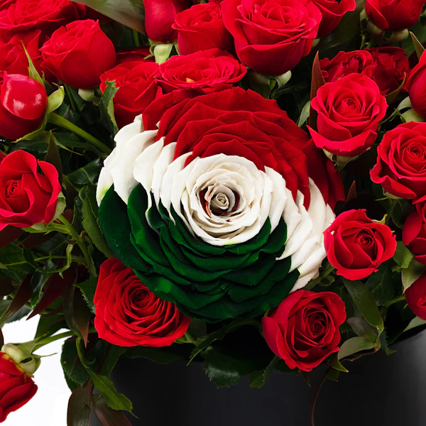يحتوي هذا الترتيب على 20 بيبي حمراء ،جوري دائمة بألوان علم المكسيك و روسكوس ايطالي ، وصندوق أسود مستدير.