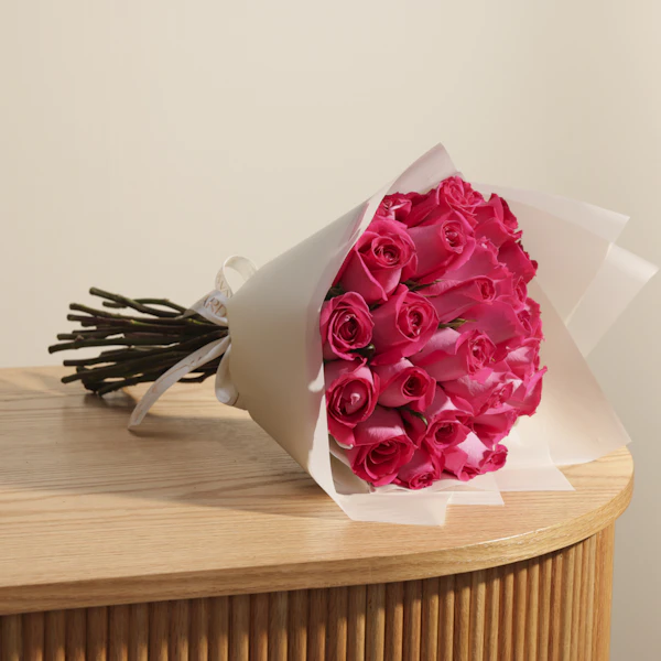 أضف لمسة من الفخامة والجمال إلى مناسباتك مع هدية قيمة تتألق بباقة 25 جوري فوشيا الرائعة. تأتي هذه الباقة المميزة مغلفة بـ غلاف كريمي أنيق، مما يضيف لمسة من الرقي والجاذبية لكل لحظة. جوري الفوشيا هو رمز للأناقة والحب، وهذه الباقة توفر تجربة بصرية رائعة تجمع بين الألوان الزاهية والتنسيق المثالي. اختر أحلى هدية الآن واجعل كل مناسبة أكثر تميزًا وجمالًا، مع باقة من الجوري الفوشيا التي تعكس ذوقك الرفيع وتعبر عن مشاعرك بأبهى صورة. احتفل بطريقة استثنائية وقدم هدية تظل في الذاكرة طويلاً.