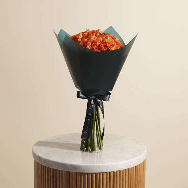 اجعل لحظات أحبائك أكثر إشراقًا مع باقة بيبي جوري البرتقالية المبهرة! تحتوي هذه الباقة على ورود بيبي جوري برتقالية رائعة الجمال، لتضيف لمسة من البهجة والحيوية لأي مناسبة. مغلفة بغلاف تيل داكن أنيق، تضيف لمسة من الفخامة والتألق. سواء كنت تبحث عن هدية مميزة لمن تحب أو ترغب في إدخال الفرح إلى قلب عزيز عليك، فإن هذه الباقة هي الخيار المثالي. قدمها الآن وكن السبب في ابتسامة لا تُنسى!