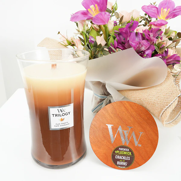 شمعة حلويات المقهى الثلاثية الكبيرة من وود ويك | باقة زهور رقيقة