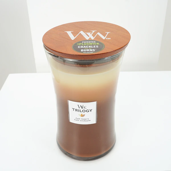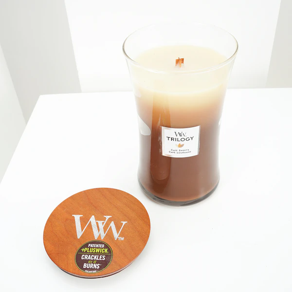 - شمعة وود ويك الثلاثية الكبيرة على شكل الساعة الرملية: حلويات المقهى