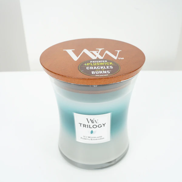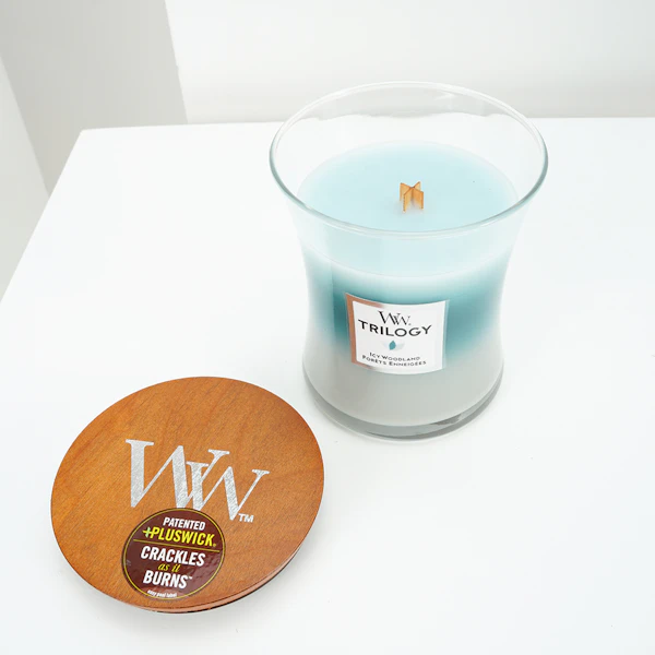- شمعة وود ويك الثلاثية المتوسطة على شكل الساعة الرملية: ايسي وودلاند