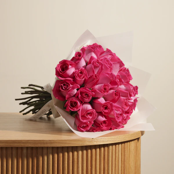 اجعل لحظاتك الخاصة أكثر تميزاً مع باقة جوري الفوشيا الرائعة في غلاف كريمي. تجمع هذه الباقة بين ألوان الفوشيا المبهجة التي تعبر عن الحب والحيوية، وبين الغلاف الكريمي الأنيق الذي يضيف لمسة من الفخامة والرقي. بفضل تنسيقها المثالي، تعتبر هذه الباقة الخيار الأمثل لإهدائها في المناسبات السعيدة أو كهدية مميزة لشخص عزيزاختَر باقة جوري الفوشيا في غلاف كريمي لتجعل كل لحظة أكثر إشراقاً وجمالاً اطلب الآن لتستمتع بهذه الزهور الرائعة وتضيء يوم أحبائك.