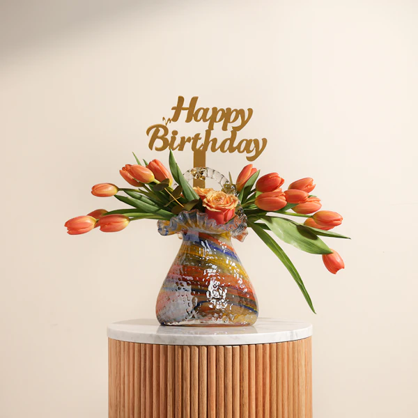 مزهرية زهور عيد ميلاة سعيد متألقة