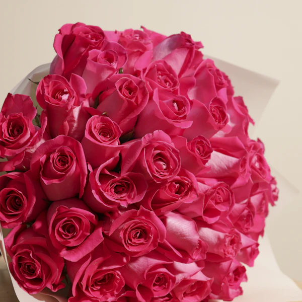 أضف لمسة من السحر والبهجة مع باقة الزهور المميزة التي تحتوي على جوري فوشيا الرائع. تأتي هذه الباقة الجميلة مغلفة بغلاف كريمي أنيق، مما يضفي لمسة من الفخامة والتألق على التصميم. الجوري الفوشيا يرمز إلى الحب والحيوية، ويجعل هذه الباقة خياراً مثالياً لأي مناسبة، سواء كانت احتفالاً مميزاً أو هدية فاخرة لأحد الأحباء. تجعل باقة الزهور هذه كل لحظة أكثر تميزاً وجمالاً بفضل لونها الزاهي وتصميمها الراقي. لا تفوت فرصة إبهار من تحب، اطلب الآن واستمتع بأروع اللحظات مع باقة زهور جوري فوشيا المتألقة.