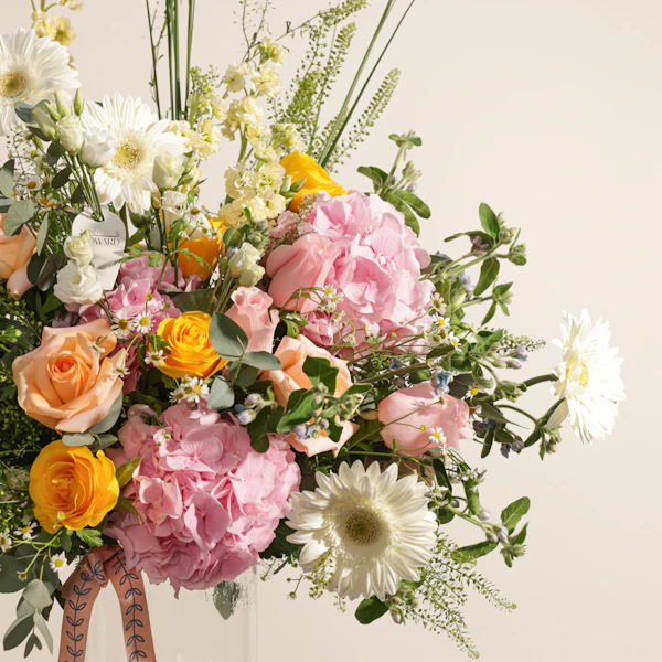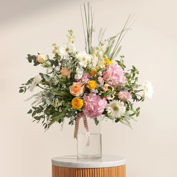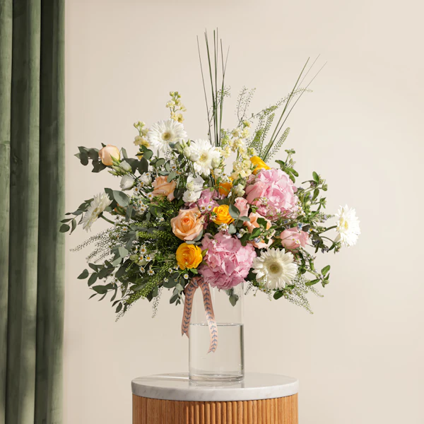 ما أجمل من أن يبدأ أحباؤك يومهم بهذا الجمال! فازة يوم مشرق ليست مجرد مجموعة من الزهور، بل هي بداية رائعة لليوم. مع كل زهرة في هذه الفازة، ستُضفي لمسة من البهجة والتفاؤل، وتجعل صباحهم مليئًا بالإشراق والحيوية. تُضفي هذه الفازة لمسة من البهجة والتفاؤل، وتُعد الهدية المثالية لإضاءة يوم من تحب. قدمها لتُعبّر عن فرحتك وتُبهر أحبائك بجمالها وروعتها، ولتنشر السعادة في كل زاوية من حياتهم.
