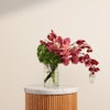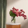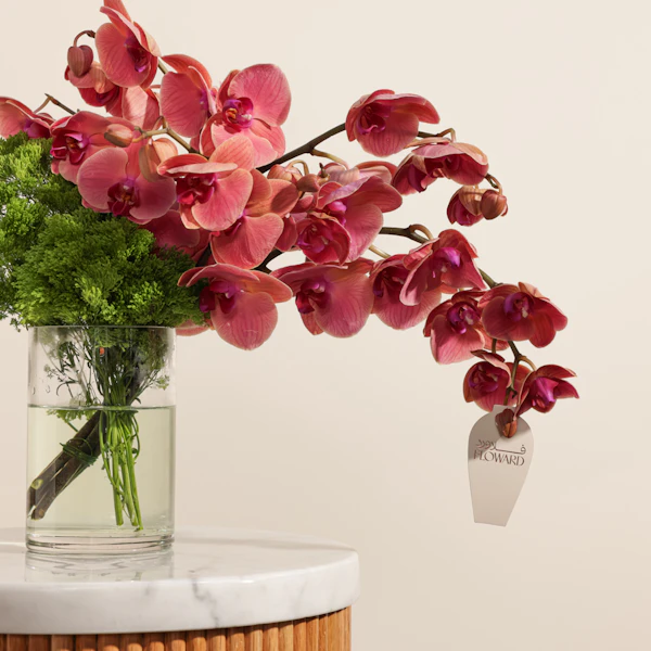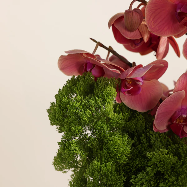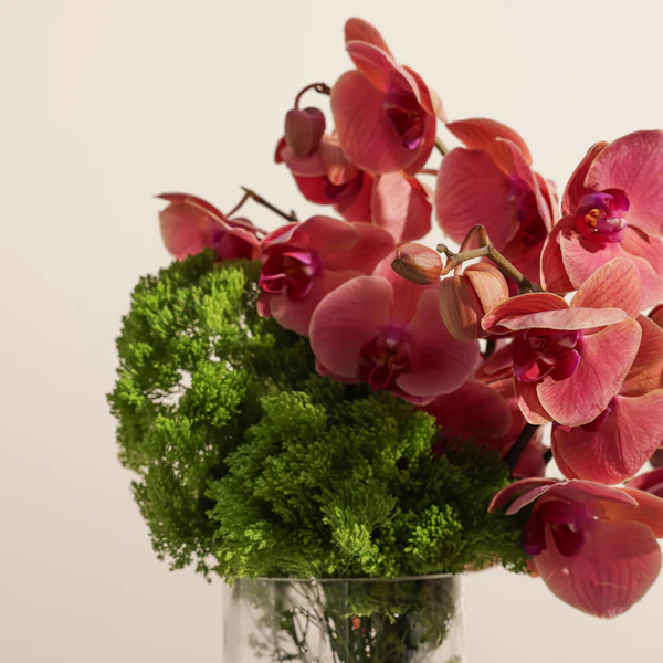 اجعل لحظات أحبائك الخاصة أكثر سحرًا مع باقة من أوركيد باللون المرجاني الساحر، تمتزج بتناغم مع زهور التراكيليوم الخضراء التي تضيف لمسة من الانتعاش الطبيعي. تأتي هذه التنسيقة الرائعة في فازة زجاجية أسطوانية شفافة تعكس جمال الزهور وتضفي على ديكور المكان لمسة من الرقي والأناقة. هذه الهدية الرائعة تعبر عن مشاعرك بدفء ورفعة، سواء كنت تقدمها للاحتفال بمناسبة معينة أو لإضفاء لمسة من الجمال على يوم أحد أحبائك. اطلب الآن وأسعد قلب من تحب بهذه الباقة الفاتنة التي تجمع بين الألوان الحيوية والتصميم الأنيق في تنسيق لا يُنسى.