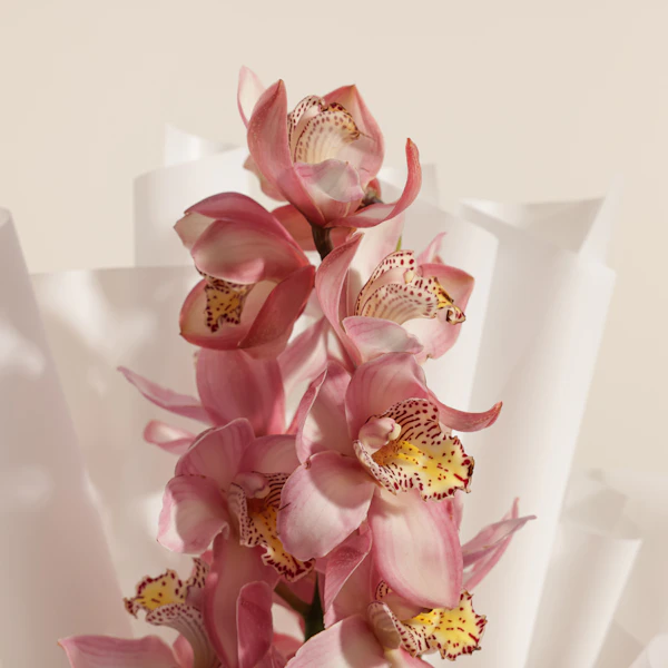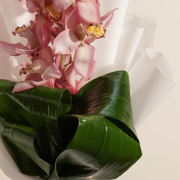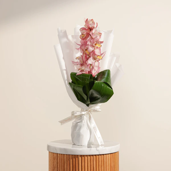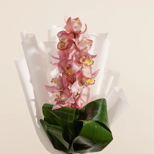 قدّم لمن تحب باقة أوركيد سيمبديوم وردية رقيقة وفاخرة. أزهار السيمبديوم محاطة بأوراق خضراء منعشة تضيف لمسة من الحياة والحيوية. تأتي هذه الباقة الرائعة مغلفة بعناية في غلاف أبيض أنيق يعكس النقاء والصفاء، مما يجعلها هدية مثالية للتعبير عن مشاعرك لأحبائك. سواء كنت ترغب في الاحتفال بمناسبة خاصة أو ترغب في إضفاء البهجة على يوم شخص عزيز، فإن هذه الباقة ستترك أثراً لا يُنسى بفضل جمالها الأخاذ ورائحتها العطرة. فاجئ من تحب بهذه الباقة الساحرة التي تجمع بين الأناقة والطبيعة في أبهى صورها.