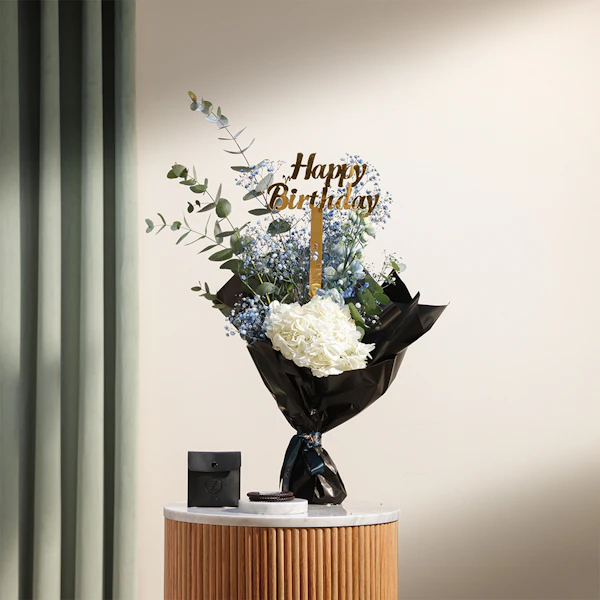 SKU FC30794هدية الرقي والأناقة مع زوس براون خمر مزدوج، المقدمة بشكل جميل في غلاف أسود. تقترن هذه القطعة الرائعة بباقة تضم زهور الكوبية البيضاء المذهلة والجبسوفييليا الرقيقة، وتعلوها جميعًا طبقة علوية أنيقة من "عيد ميلاد سعيد". مثالية للاحتفال باللحظات الخاصة، تجسد هذه الهدية سحرًا وأناقة خالدة، مما يجعلها خيارًا مثاليًا لأعياد الميلاد والمناسبات الأخرى التي لا تنسى.