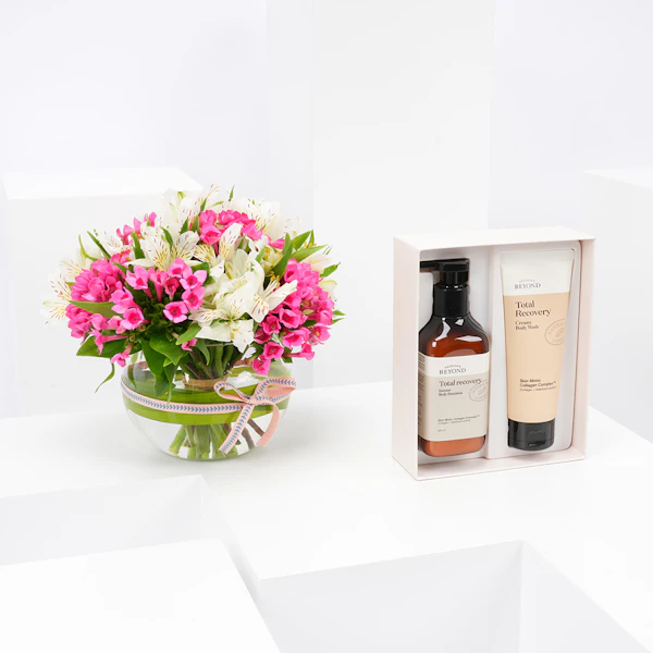 مجموعة بيوند توتال ريكفوري من ذا فيس شوب مع فازة الزهر