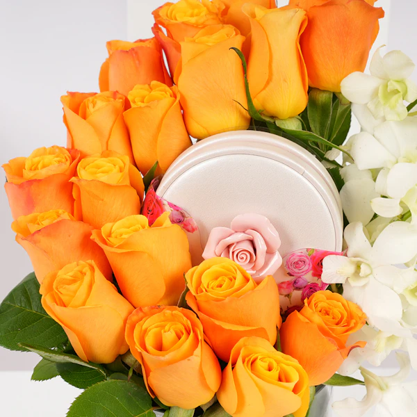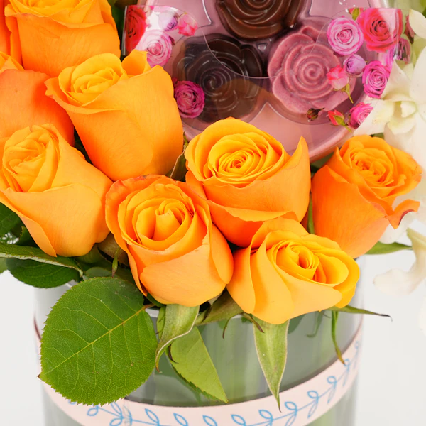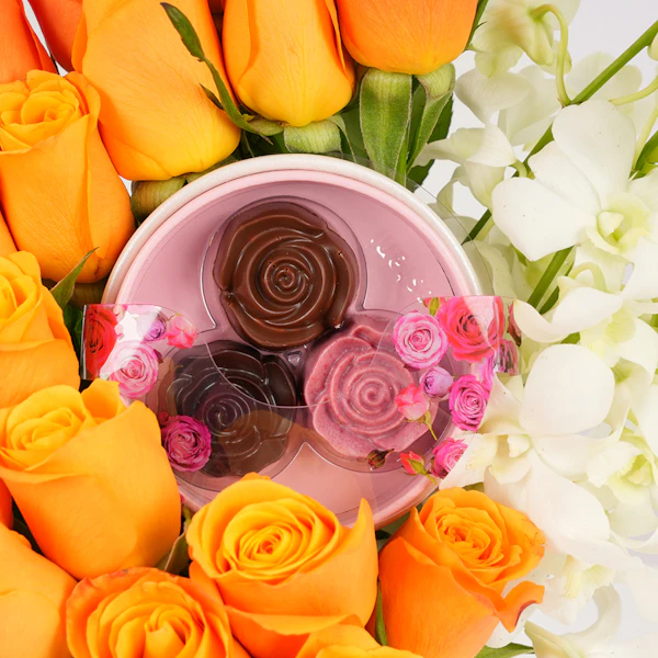 الأسعار شاملة الضرائبصندوق شيكولاته الورد من بستاني | جوري برتقالي