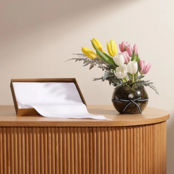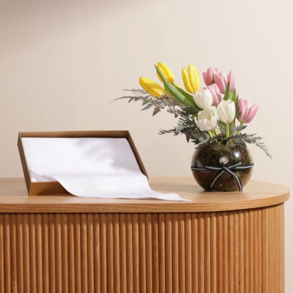 هدية راقية وأنيقة لا تُنسى! طقم الهدايا الفاخر من ريتشي، الذي يضم ثوبًا أبيض مميزًا من اختيارك وشماغًا أو غترة بالمقاس المثالي من اختيارك أيضًا. ولإضافة لمسة جمالية، يقدم الطقم مع فازة زهور أنيقة من اختيارك، لتكمل هذه الهدية الفاخرة بأناقة لا تضاهى. اختري الآن وامنحي الرجل المميز في حياتك تجربة فاخرة لا تُنسى!